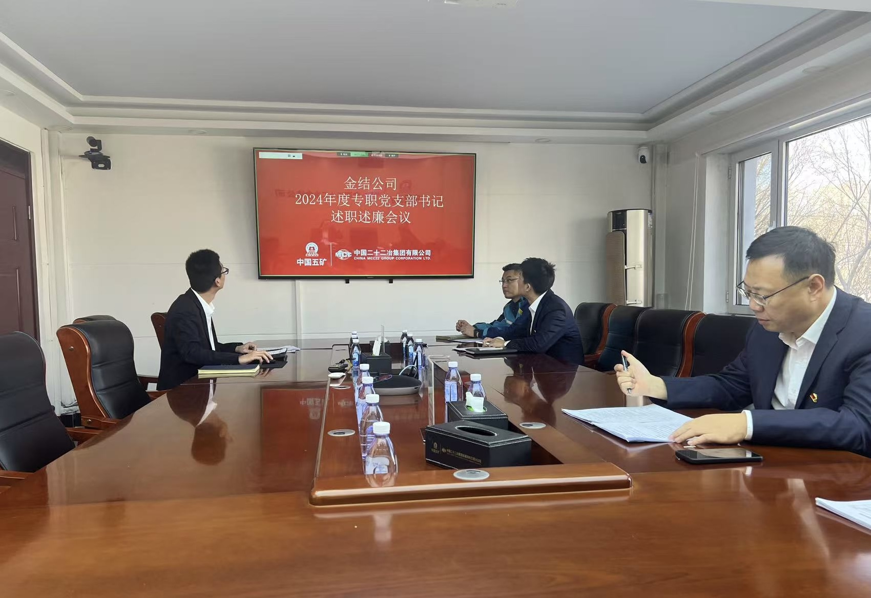 公司黨委辦公室、黨委組織部、黨群工作部、紀檢部、法務(wù)部主要負責人現(xiàn)場參會。公司在唐黨支部書記現(xiàn)場述職,各項目黨支部書記視頻述職。