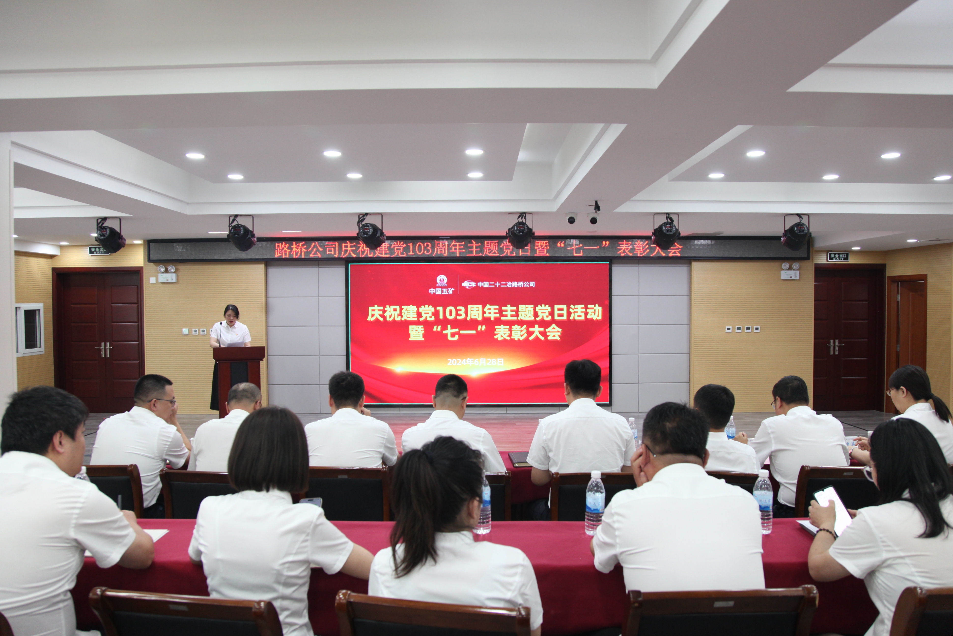 路橋公司助理級(含)以上領導,受表彰的先進基層黨組織、優秀黨務工作者、優秀共產黨員、學習標兵,機關與專業公司全體黨員現場參會;各項目黨支部視頻參會。
