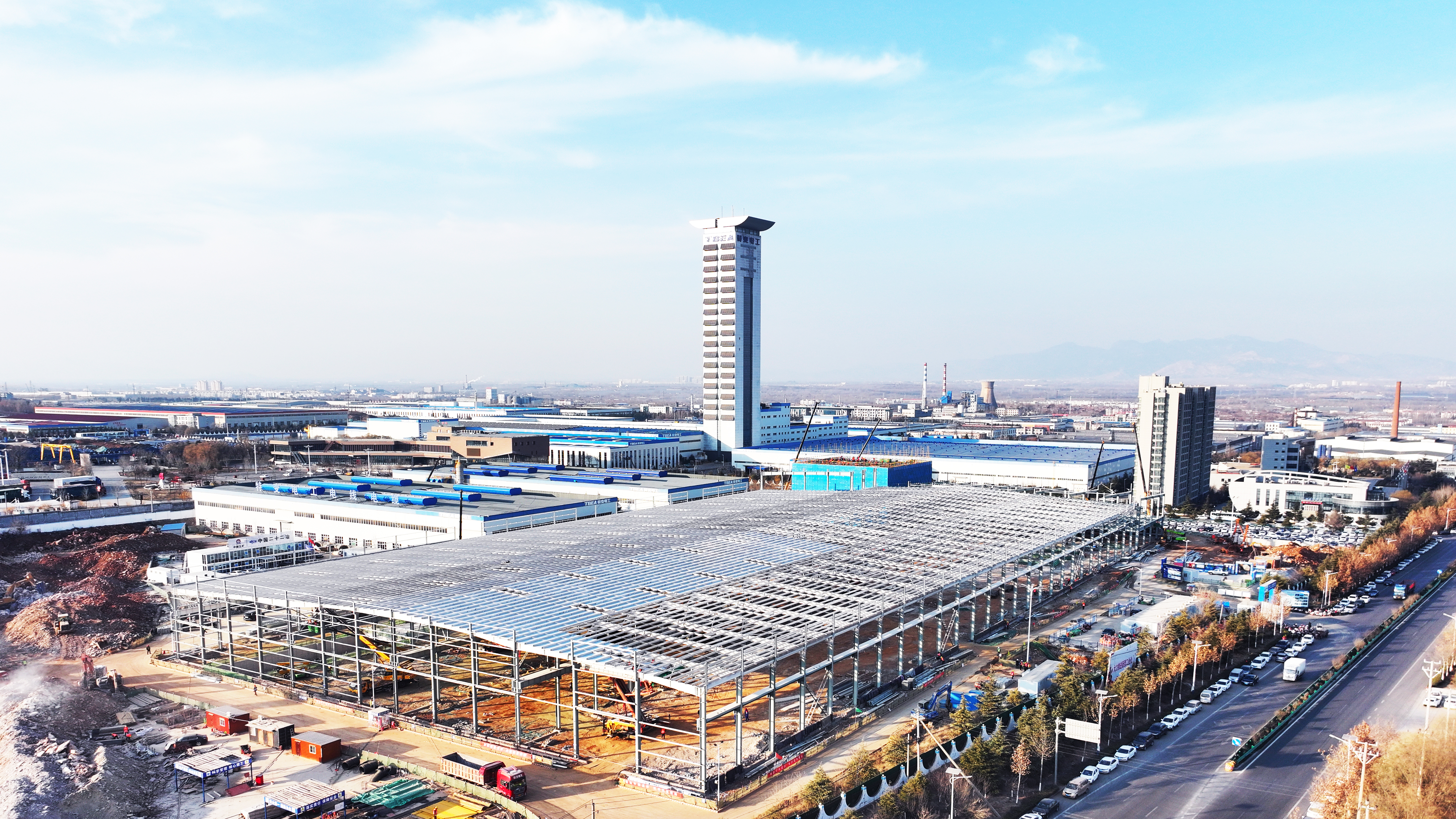 近日,山東公司承建的魯纜新能源項目懸鏈樓順利實現封頂,標志著項目土建工程部分的建設工作取得了突破性進展。