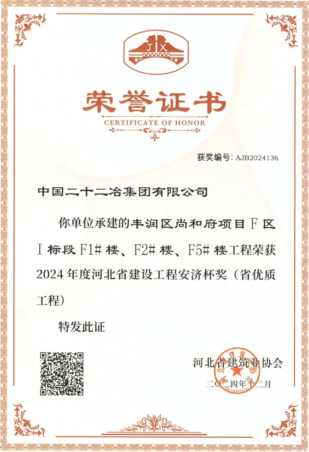 時代置業公司開發建設的尚和府項目榮獲“安濟杯”