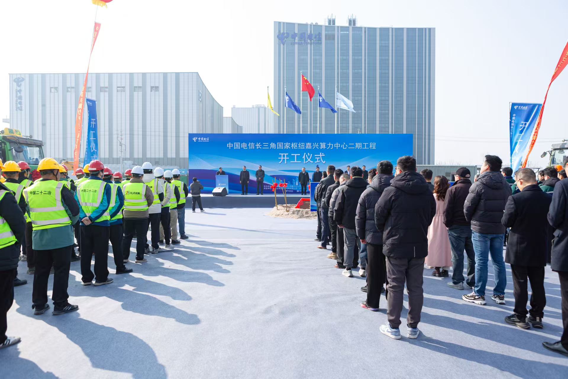 2月12日,中國二十二冶浙江分公司承建的中國電信長三角國家樞紐嘉興算力中心二期工程開工奠基儀式在嘉興市嘉善縣舉行。