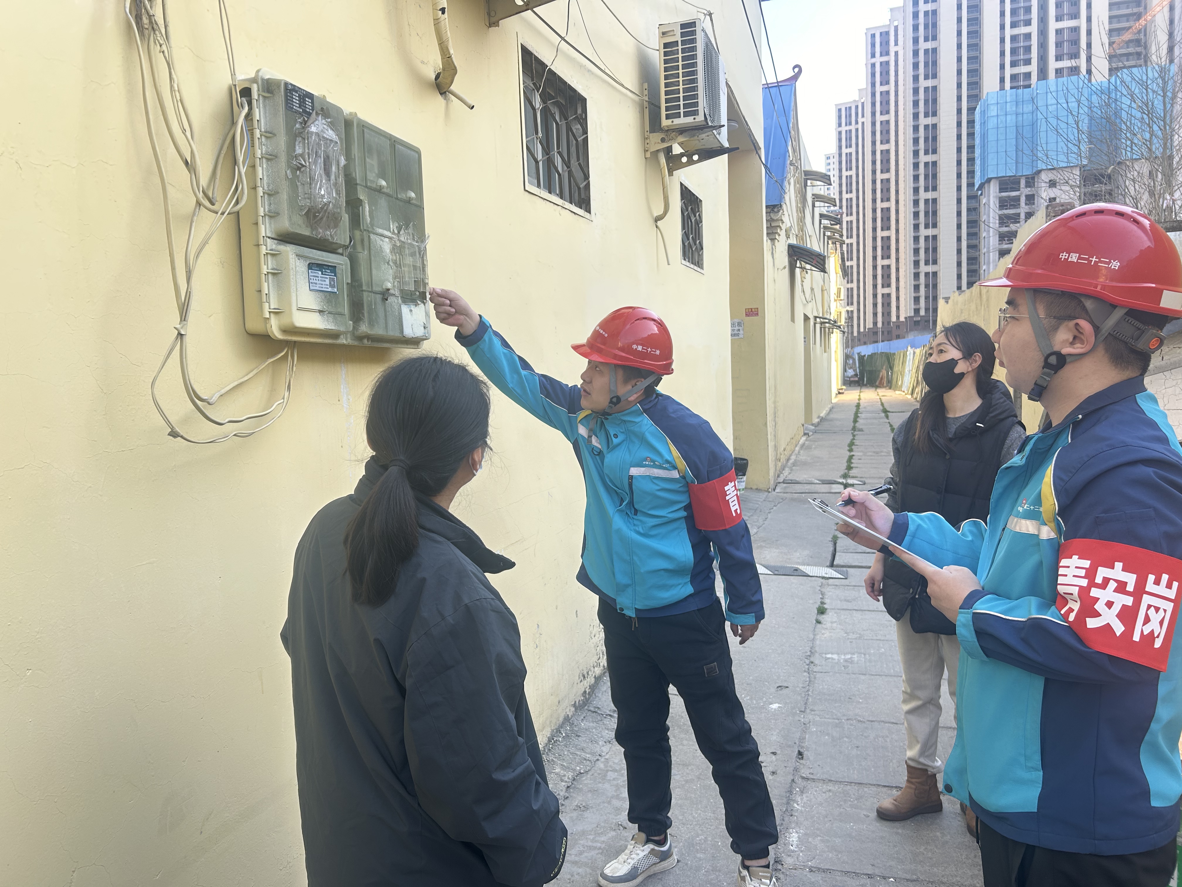 華中公司菏澤項目聯合項目所在地居委會 對老舊小區進行消防、臨電檢查