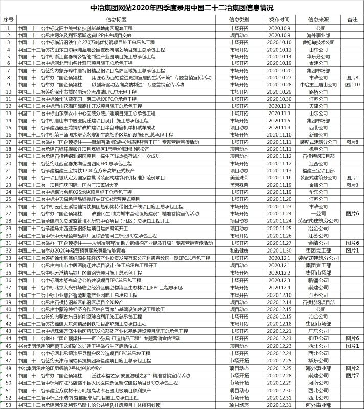 中冶集團網站2020年四季度錄用中國二十二冶集團信息情況